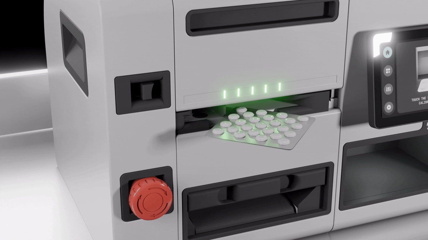 Additionally, this machine ensures compatibility with both even and uneven medication packet profiles thanks to the motorised ring support system, allowing for any type of medication to be calibrated and ready for deblistering.